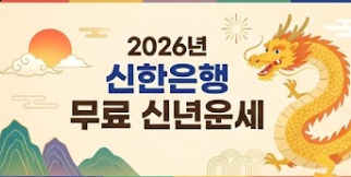 2026년을 준비하는 가장 간단한 방법은 ‘운세 흐름을 미리 확인하고 나만의 계획을 세우는 것’입니다. 아래의 신한은행 무료 운세 링크를 통해 지금 바로 2026년 운세를 확인해보세요!