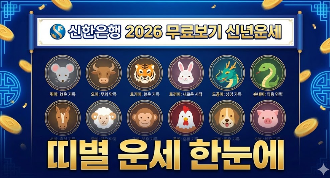 그중에서도 신년운세 2026 무료 보기를 찾는 분들이 가장 많이 이용하는 서비스가 바로 신한은행·신한생명 무료 운세입니다. 본 글에서는 신한은행 무료 신년운세 이용 방법과 함께 2026년 띠별 운세 총정리, 그리고 운세를 활용하는 실전 팁까지 정리했습니다.