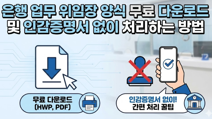 이 글에서는 은행 위임장 양식을 무료로 다운로드할 수 있도록 제공하며, 인감 없이 위임장을 제출해도 처리되는 방법과 조건을 2026년 기준으로 안내드립니다.